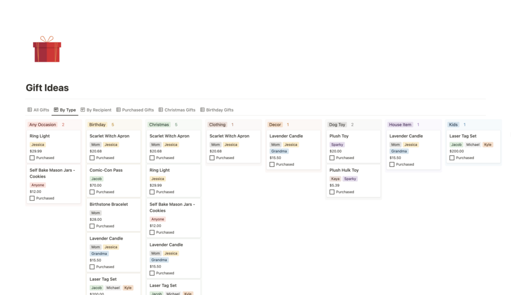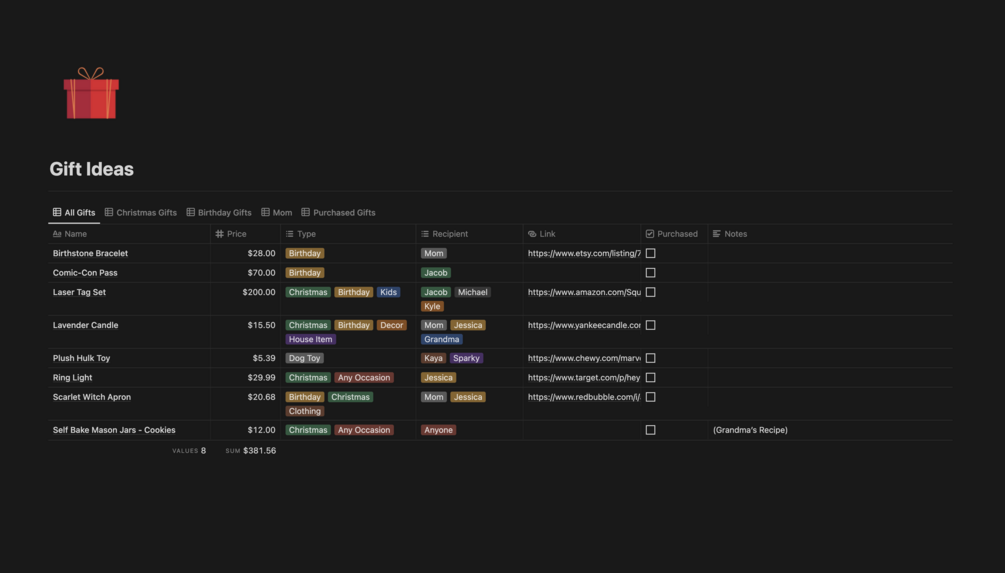 Gift Idea Organizer | Notion